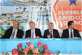 O prefeito Alexandre Von participou nesta quarta-feira, 14, da sessão ordinária deliberativa da Assembleia Legislativa do Pará, que está sendo realizada em Santarém. O gestor santareno destacou a aproximação do Legislativo Estadual junto aos demais municípios do Pará. Von lembrou que a ALEPA tem papel fundamental na votação de matérias em projetos estratégicos para Santarém e região, principalmente, no que diz respeito a melhoria e expansão do abastecimento de água e ampliação dos investimentos em saúde e educação.